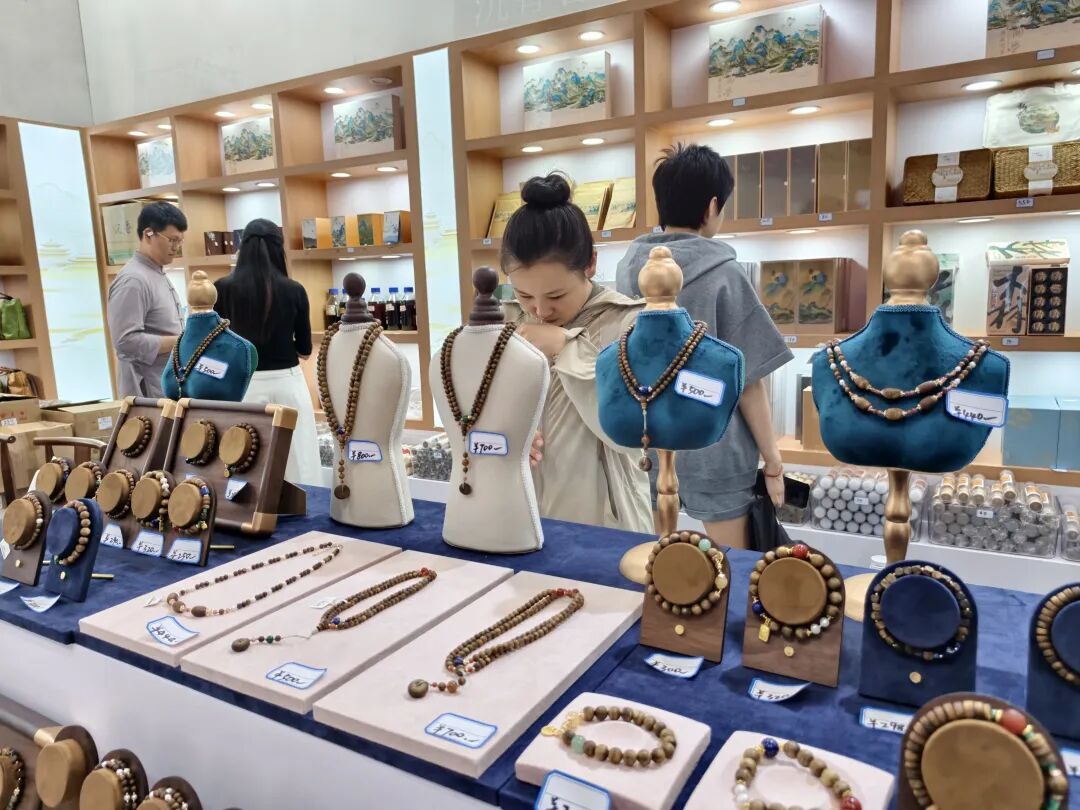 在“沉香好物”集市中,来自观珠镇及合利村的沉香商家将各式各样的沉香珠串集中展销,为各方来者一一呈现电白好物。集市内,强村公司主播还架起手机支架,开启直播带货模式,将“电白香韵”通过屏幕传递给全国消费者。“这是我们自己种的沉香,品质有保障,欢迎大家下单。”年轻的沉香主播自信地对着镜头热情推介电白沉香产品,身后是人群涌动的热闹集市。
