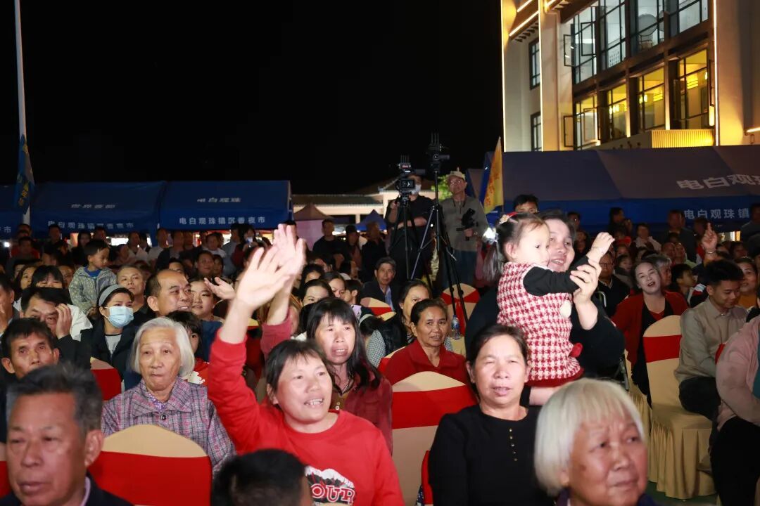 晚会中既有电白本土优秀文艺节目,如电白六中、观珠中学分别带来舞蹈《上玲鼓》和《浮清月》《簪越山海》,青春洋溢的舞姿瞬间点燃现场氛围;还有众多茂名本土实力歌手倾情献上《绝对是个梦》《欢乐年年》《祝愿》《故乡的雨》《下一个入口》《千千阙歌》等经典歌曲,美妙歌声传遍乡间。此外,本土知名音乐人吴勇携团队登场,《亲恩》《此生无憾》《天空海阔》《祝福你》等歌曲激昂唱响,将现场气氛推向高潮。