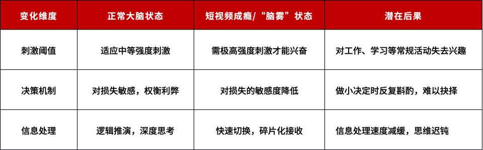 通路重塑:长期适应这种“短平快”的刺激,大脑会降低对常规信息的敏感度[4]。